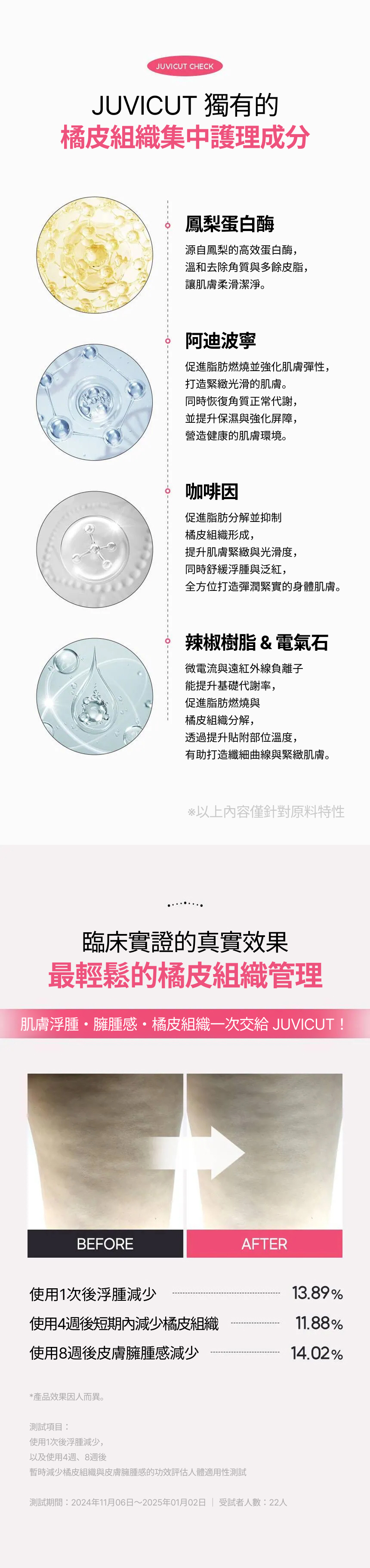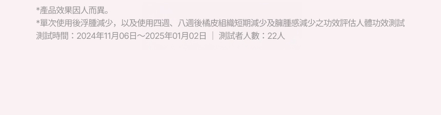 ✓ 改善橘皮組織外觀 ✓ 塑造緊緻線폼 ✓ 溫感緊緻 輔助管理